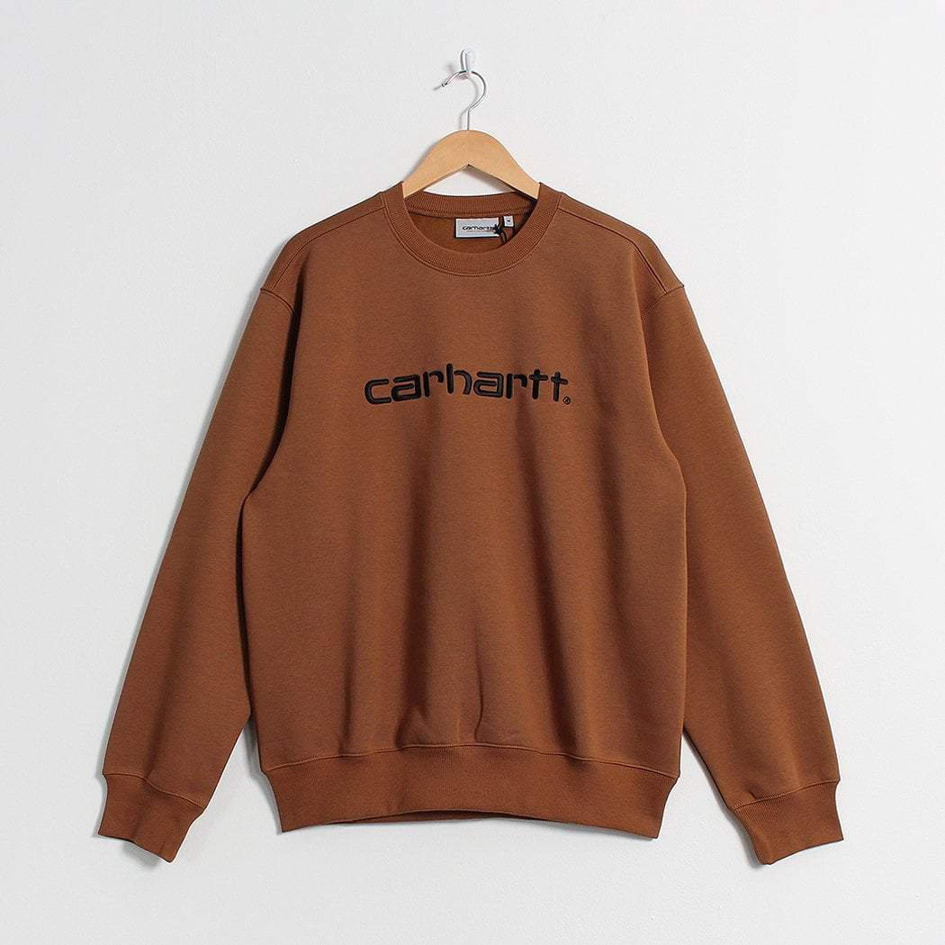 The Carhartt WIP Carhartt Crewneck Sweatshirt in Hamilton Brown, perfect for wear throughout the seasons.